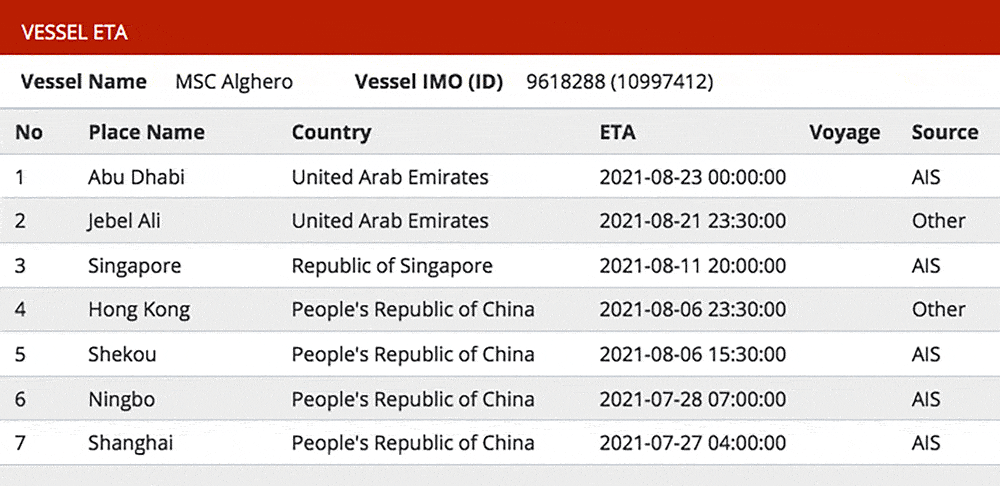 - ETA updated for transshipment and destination ports